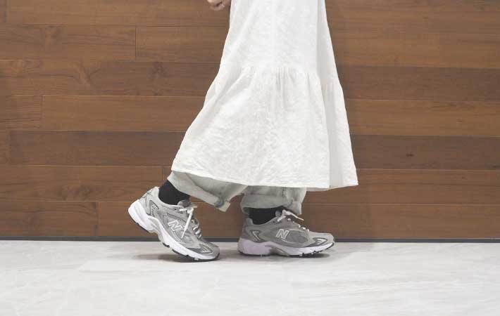 “ニューバランス初心者”にもおすすめ! 『725』を履いたら「気づいたらめちゃ歩いてた」「旅行も推し活ライブも余裕」 ファッション By - pon 更新:2026-04-20 ※本記事はUPDATEが独自に制作したコンテンツです。また、本記事を経由して商品の購入が発生した場合に、ECサイト等から送客手数料を受領することがあります。 お出かけが楽しい季節は、新しい靴が欲しくなる…。 暖かくなると、そんな気持ちになる人は多いのではないでしょうか。 筆者も最近、『New Balance(ニューバランス)』の『725』を購入。カラーは『グレー』を選びました。 Amazonで見る 楽天市場で見る 実は、ニューバランスのシューズは初の購入。 決め手は、グレーカラーを基調とした合わせやすいカラーと、主張しすぎない小ぶりな『Nロゴ』です。 ビジュアルに惹かれて選んだシューズですが、実際に履いて歩いてみて「これは人気モデルなのも納得!」と感じた理由を紹介します。 ついたくさん歩いちゃう!ランニングシューズだからこその軽快な履き心地 ニューバランス『725』を、初めて履いて歩いてみた感想はというと…。 何コレ、弾むようにどんどん歩ける! まさに、『推進力』を感じる履き心地。ぐんぐんと前に進めて思わずたくさん歩きたくなりました。 ちなみに購入レビューを見てみても、快適な履き心地に高評価が。 ・このモデルが一番履きやすい!足が疲れない。 ・足にフィットしてとても歩きやすい! ・プライベート用で買ったけれど、履き心地がよすぎて仕事用にした。 ・イベントで2万歩近く歩いたけれど、靴擦れ1つせず快適だった。 それもそのはず、タウンユースでも人気な『725』ですが、もともとはランニングシューズとして設計されています。 このやや上がったつま先が、軽快な足運びをサポート。 ソールには、衝撃を吸収する『ABZORB(アブゾーブ)』と『C-CAP(シーキャップ)』が搭載されています。どちらもニューバランス独自のクッションテクノロジーで、足裏への負担を軽くしてくれる設計です。 また、シューレースを通すループの位置が、上に行くほど狭くなっていることも特徴。足の甲の部分まで、フィット感をしっかりと調節できますよ。 ちなみに、『725』は横幅がわりとスリムな設計。 足幅が広い筆者は、ジャストフィットよりも気持ち緩めに靴ひもを調整すると、歩いた時により疲れにくくなりました。 アッパーにはメッシュ素材が使われているので、夏でも蒸れを感じずに過ごせます。 やっぱり服に合わせやすい!適度な存在感で長く使いやすいデザイン ニューバランス『725』を服に合わせてみると、このような感じに。 履く前は「白いワンピースにデニムを重ねたスタイルだと、足元がごちゃつかないかな…」と思っていましたが、自然にコーディネートに馴染みます。 また、服に合わせると、シューズ単体で見た時より、スポーティーな印象が控えめになったように感じました。 やはり、コーディネートを選ばずに活躍しそうな一足。フェミニンな服装をカジュアルダウンさせたい時にも履く予定です! そして、ソールが最大3cmあるため、少しスタイルアップしてくれるのも嬉しいポイント。「ソールが高くて歩きにくい」ということはありませんでしたよ。 “立ちっぱなし”でもニューバランス『725』は疲れにくい!コンサートに履いて行ってみると… たくさん歩いても疲れにくい『725』ですが、立ちっぱなしの場面ではどうなのでしょうか。 購入後にちょうどコンサートへ行く機会があったため、早速『725』を履いて参戦。 開演から終演までの3時間ほぼ立ちっぱなしで、さらに入退場の時も、人混みで前に進めず立ったままの時間がありました。 今までは、帰りの電車で立っているのも疲れるほどになりましたが、コンサートが終わって感じたのは「まだまだ歩けそう!」ということ。 また、コンサート中も足の疲れがあまり気にならず、最後まで公演に集中できましたよ。 『725』のソールのハイテクなクッションは、立ちっぱなしの時も足裏への負担を分散してくれるようです。 長時間歩く日以外に、コンサートやフェスイベントでも、ニューバランス『725』の出番は多くなるでしょう! ニューバランス『725』のまとめ ニューバランス『725』は、たくさん歩く日や立ちっぱなしの時も足が疲れにくく、服装を選ばない万能スニーカー。 「『725』を履いてどこへでも出かけたい!」と感じた筆者は、色違いでの購入も検討中です。 さまざまなカラー・デザインが展開されているので、欲しいサイズがなくなる前に、ぜひ早めにチェックしてくださいね。 Amazonで『グレー』を見る 楽天市場で『グレー』を見る Amazonで『ライトグレー』を見る 楽天市場で『ライトグレー』を見る Amazonで『ホワイト/カーキ』を見る 楽天市場で『ホワイト/カーキ』を見る Amazonで『ホワイト/グリーン』を見る 楽天市場で『ホワイト/グリーン』を見る Amazonで『ブラック』を見る 楽天市場で『ブラック』を見る [文・構成/UPDATE編集