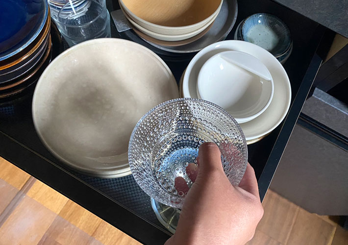 「これは買って大正解!」「朝から使うと気分上がる!」 美しくてとにかく丈夫で使いやすい!イッタラの『カステヘルミ』が万能すぎた ホーム・キッチン By - かねやん 更新:2026-04-21 ※本記事はUPDATEが独自に制作したコンテンツです。また、本記事を経由して商品の購入が発生した場合に、ECサイト等から送客手数料を受領することがあります。 暖かくなって気分もご機嫌になってくると、つい新しい食器を集めたくなる筆者。 特に見た目が涼し気なガラスの器は、刺身やそうめん、アイスクリームなどを盛りつけるのにぴったりで、夏に向けて揃えたくなります。 私物の『ティーマ』シリーズ 食器の中でも北欧食器ブランド『iittala(イッタラ)』の『ティーマ』を愛用しているのですが、それとは別にずっと気になっていたのが『カステヘルミ』。 丈夫でシンプルなデザインである磁器製の『ティーマ』の一方で、カステヘルミは繊細な装飾と美しい透明感が魅力のガラス製。 テーブルに置いてあるだけで華やかな存在感を放ち、どんな料理もワンランク上に演出してくれるといいます。素敵すぎる…! カラーやサイズはさまざま展開されていますが、筆者はほどよいサイズで使い勝手のよさそうな230mLボウルのクリアを購入しました。 Amazonで『イッタラ カステヘルミ ボウル 皿 230ml クリア』を見る 楽天市場で『イッタラ カステヘルミ ボウル 皿 230ml クリア』を見る 実際に使ってみると、その細やかなディティールに反して、日常使いしやすい丈夫さも持ち合わせていて、あっという間に我が家のスタメン食器として大活躍! ここからは、カステヘルミの230mLボウルの魅力を詳しくご紹介していきますね。 ガラスなのにガシガシ使える!『カステヘルミ230mLボウル』 フィンランド語で『しずく』を意味するという、カステヘルミ。そのネーミング通り、放射状に広がる水滴のような模様が特徴的です。 朝日を浴びて連なる真珠のようにきらめく朝露からインスピレーションを得たデザインといわれ、どこかみずみずしさも感じられます。 自然光を通すと、繊細なデコレーションがきらめき、透明度の高いガラスの美しさが一層際立つでしょう。 暖かい陽が差し込むテーブルに並べて、ただうっとり眺めていたくなる…そんな器なんですよね。 キラキラと光を通して伸びるデコレーションのシルエットも美しい…! 小ぶりながらしっかり深さのある230mLサイズのボウルは、底面が広めで置いた時に安定感があります。 表面の凸凹とした装飾は、美しいだけではなく、手で持った時に滑りにくいという利点も。 外側には装飾があるのですが、内側を触るとつるっとしていて、汚れが落ちやすいのは嬉しい誤算でした。 時間が経つとこびりつきやすい乳製品の汚れも、指でこすればスルッと落とせます。 しっかりと厚みがあり、ガラス製でありながら丈夫で、繊細な印象のルックスに比べて、日常使いしやすい実用性の高さもカステヘルミの魅力。 ガラスの器にありがちな割れないように神経を使う感覚がなく、手で持った時に安心感があり、ガシガシ片手で扱えちゃいます。なんと食洗機もOK! 小ぶりで丈夫な230mLサイズは、さっと片手で取り出しやすいので、毎日のように活躍してくれます。 朝食ではヨーグルト、夕食ではキャロットラペなどの副菜など、食卓のどんなシーンでも馴染んでくれますよ。 野菜やフルーツを雑に盛りつけるだけでもサマになるのはさすが。 洋食はもちろん、そうめんや刺身など和食にもマッチするので、1つ持っているだけとにかく重宝する万能なアイテムです。 食器として使うだけではなく、アクセサリーや鍵などの小物入れとして使うのもおしゃれ。 華やかさとシンプルさを併せ持つデザインなので、インテリアとしてどんな部屋でも馴染んでくれるでしょう。 キャンドルライトを入れて、ほのかな灯りとして使っている人もいるようですよ。 【ネットの口コミ】 ・窓ガラスの雨粒や寒い日の結露をそのまま食器にしたような美しさです。厚みがあり丈夫そうなのと、粒々のおかげで手に取った時に滑りにくいのもいい。 ・朝食のヨーグルト用に使っていますが、朝から気分が上がります!フルーツ、アイスクリームの盛り付けにもよさそう。厚みがある分重さはあります。思い切って買ってよかったです! ・器として使うのはもちろんですが、照明として使うと灯りの具合による器の美しさも楽しめます。 ・これに入れるだけで、ただの切ったトマトさえおしゃれに見える、魔法のような器です。サラダ、ヨーグルト、小鉢、なんでも合います。 ・大きすぎず小さすぎず、ちょうどいい容量です。夏はめんつゆを入れて、そうめんにもぴったり! 筆者が長年憧れ続けていた、カステヘルミの器。 繊細なデコレーションなので、「普段使いにはちょっと大げさで使いづらいかな」とためらっていたのですが、使ってみたらとにかく万能で、なんでもない日常でこそ使いたくなるガラス食器でした。 丈夫