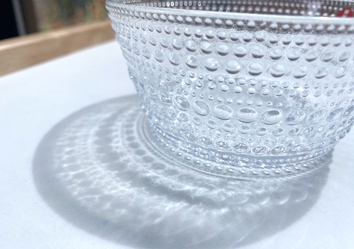 しっかりと厚みがあり、ガラス製でありながら丈夫で、繊細な印象のルックスに比べて、日常使いしやすい実用性の高さもカステヘルミの魅力。