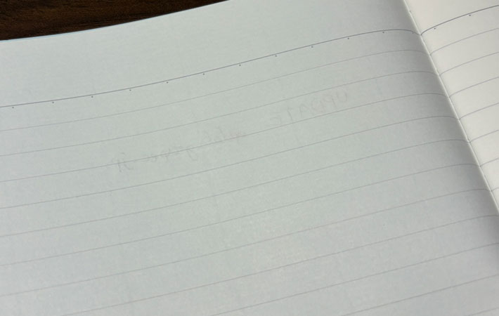 ページの罫線は水性インクを使って引かれているため、罫線の上でインクがはじかれず、文字がきれいに乗ってくれます。