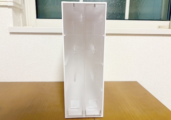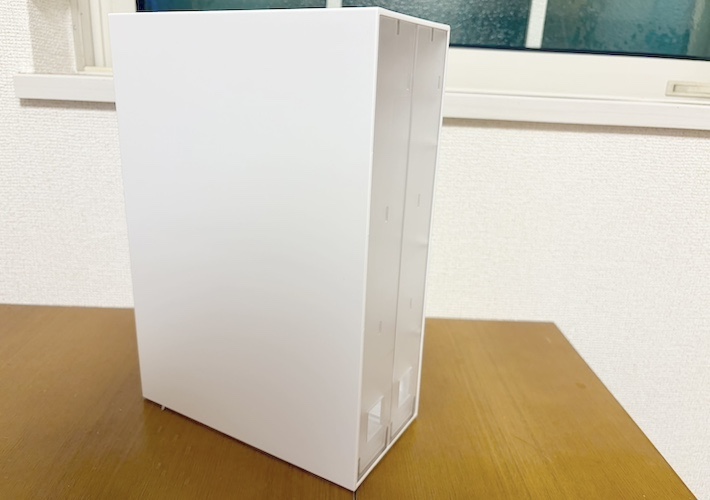 この収納ケースで特に便利だと感じたのが、最上段の収納部が下段より外側に配置されている点です。