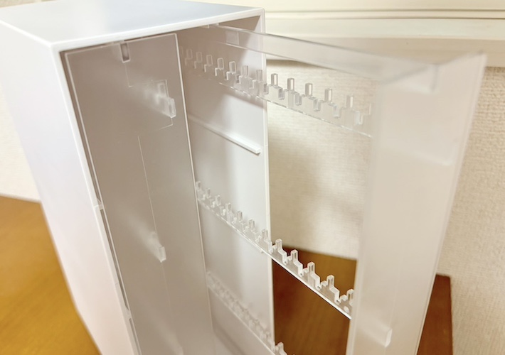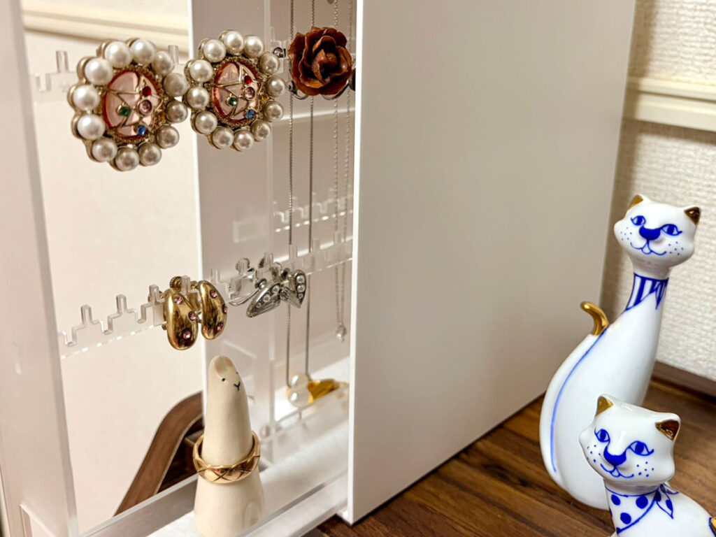 細かなところまで配慮されていて、アクセサリー収納に欲しかった要素が揃ったアイテムだと感じます。
