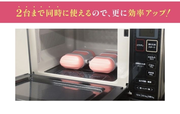 このコンパクトさのおかげで、同時に2台までレンジに入れて調理することができ、家族の分も一気に作れますよ。