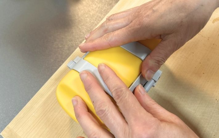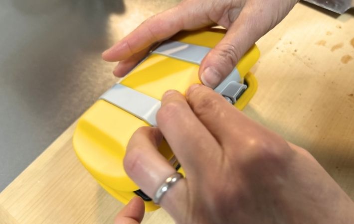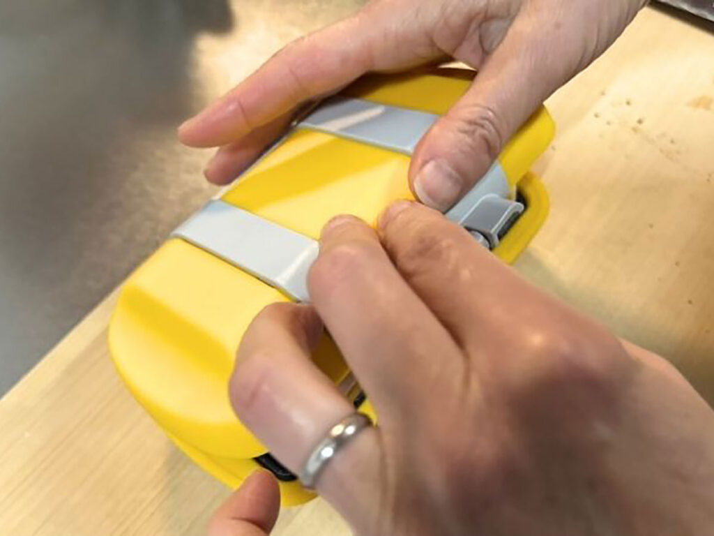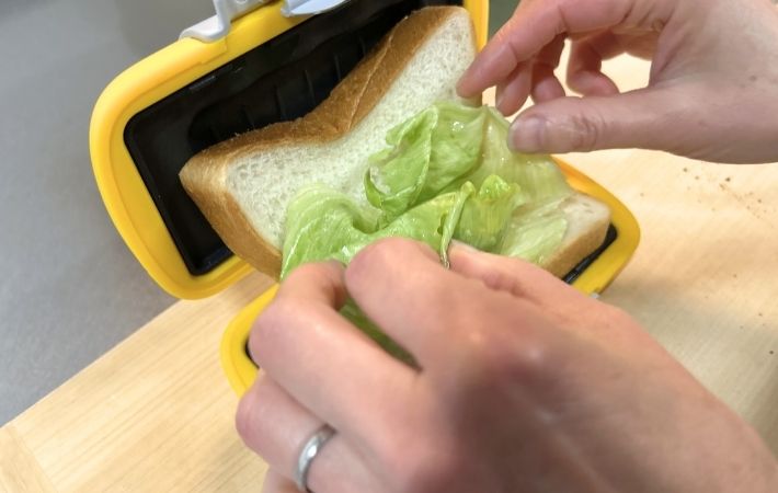 パンから具材が出ないように、ギュッと折りたたんだらパチっとロックをかければ準備完了。