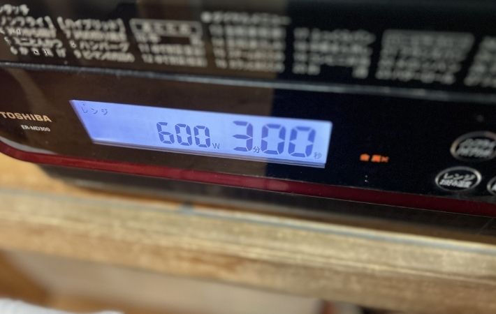 このまま電子レンジに入れて、600Wで3分加熱します。