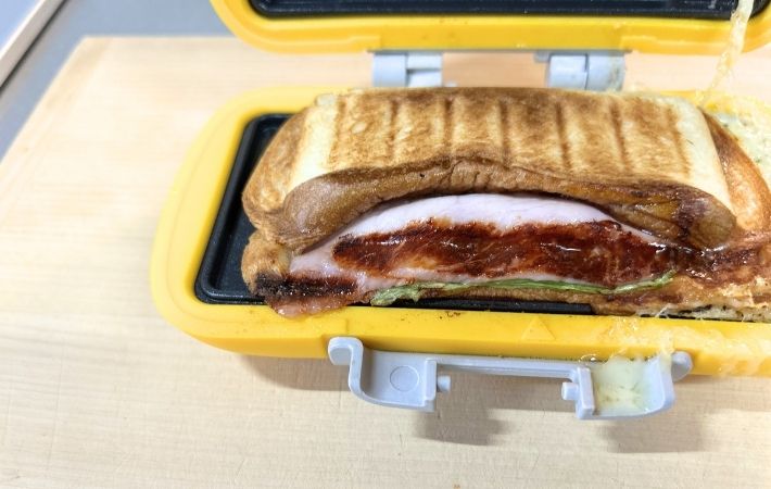 ドキドキしながらロックを外し、開けてみると、そこには見事な焼き上がりのホットサンドが!
