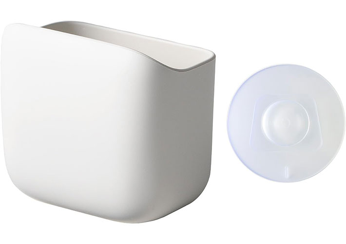 ・洗面所のゴミ箱としてちょうどいい大きさ。シンプルな形と色合いで飽きが来ない。吸盤をもがなくても取り外してゴミを捨てたり、洗えたりするのが便利。