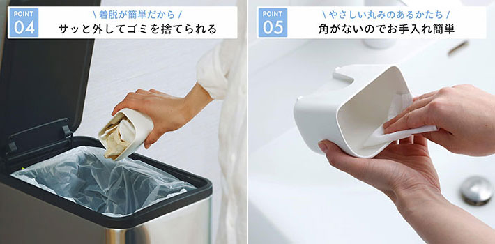 蓋がないから逆さにするだけでストンと捨てられるのもストレスフリー!