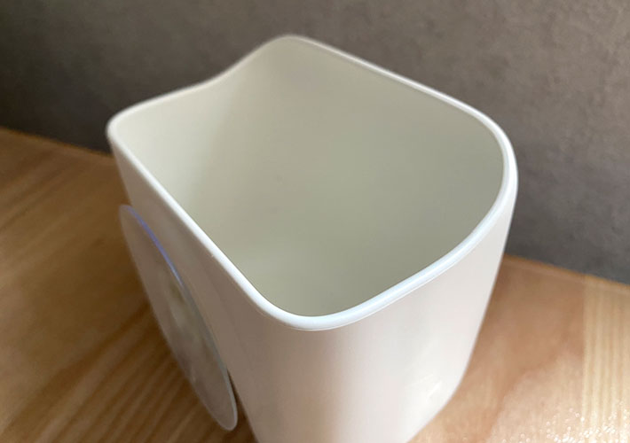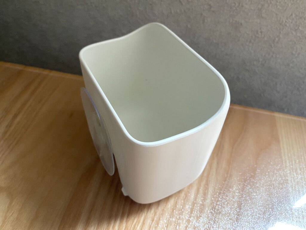 サイズは横幅9.6cm×奥行き7.6cm×高さ10.6cmほど、容量は約400mLというほどよい大きさで、まさにちょこっと捨てるのにちょうどいいんです!耐荷重は約500g。