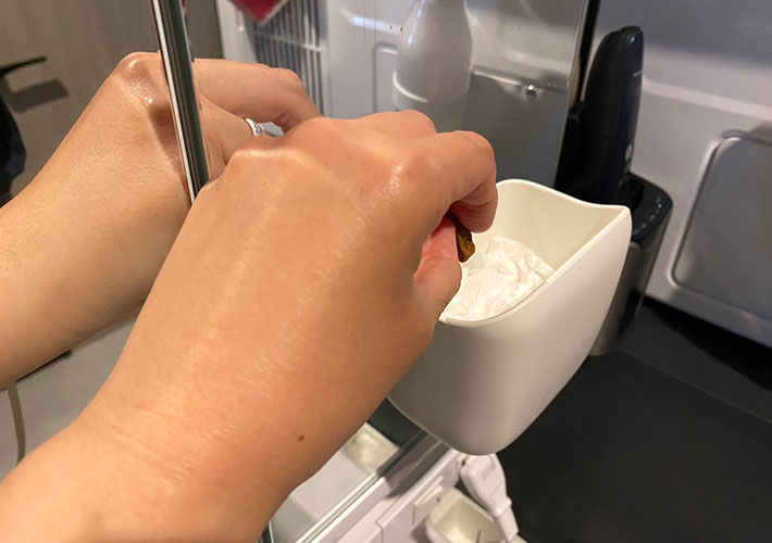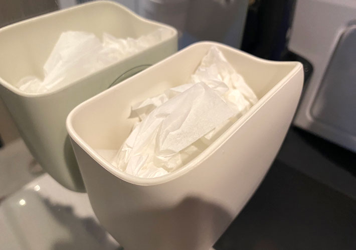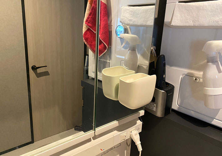お風呂前に子供の鼻水を拭いたティッシュや、メイクで使った綿棒やコットン、歯磨きで使ったフロスなど、手が届く場所に細かいゴミをさっと捨てる場所があるのがとにかく快適なんです。