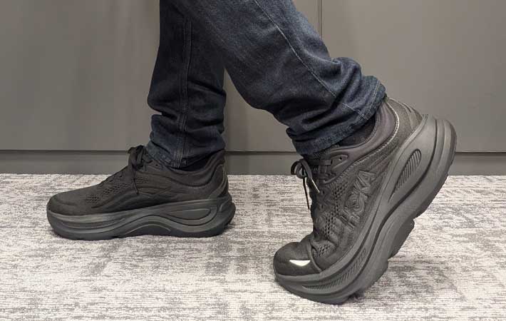 そんな人たちに好まれているモデルと言えば、ソールが厚い厚底タイプのシューズ。特にクッション性が高く、弾むように歩ける『HOKA(ホカ)』の『ボンダイ9』は人気のモデルです。