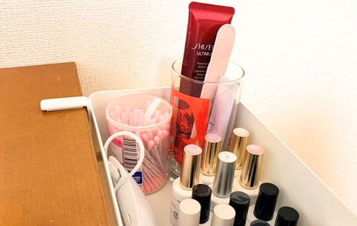仕事中に気分転換でネイルケアをすることが多い筆者は、ごちゃつきがちなネイル道具を入れてみました。