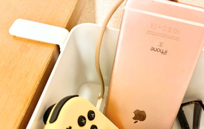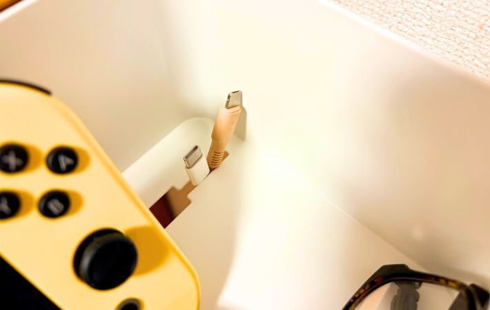 使ってみて便利だと感じたのが、ケーブルを通せる設計。スマートフォンやタブレットなどを充電しながら収納できます。