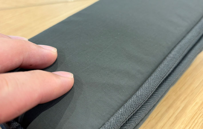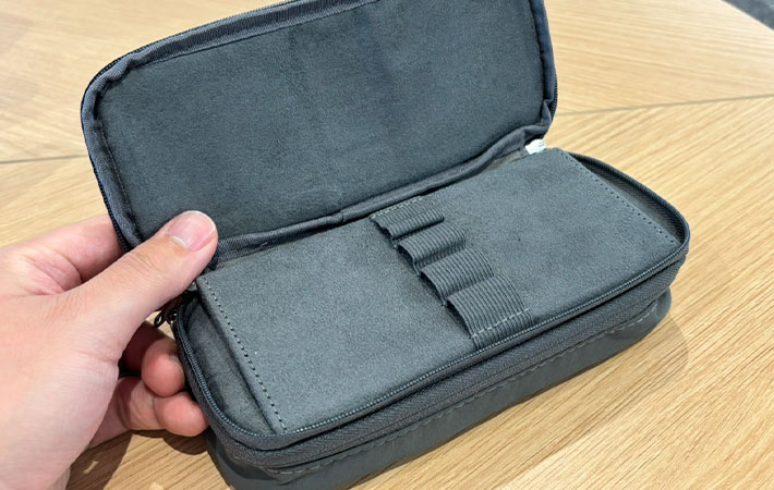 外観はすっきりシンプルで、一般的なペンケースとあまり変わりませんが、シワ感のあるワッシャー生地が高級感を漂わせています。
