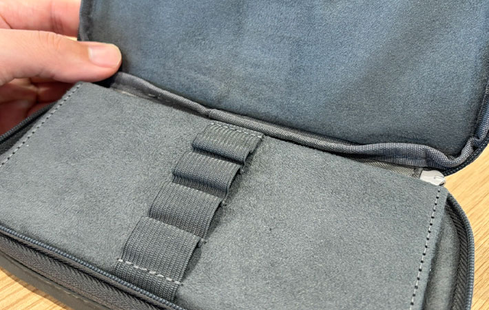 ちなみに、1段目の内側にはヌバック調合皮を使用。独特のやわらかな風合いがペンをおしゃれに引き立てながら、傷からも守ってくれますよ。
