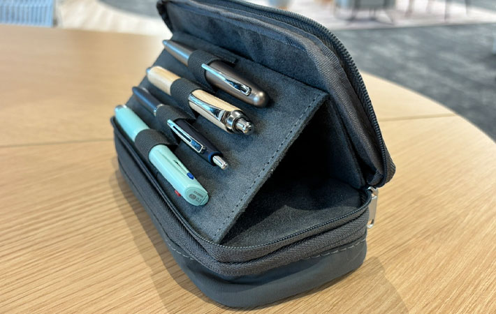 ペンを持ちかえる際、ファスナーを開けてガサゴソと探して取り出す手間を減らせますが、それだけではありません。