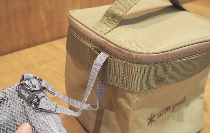 開口部をぐるりと一周するテープには、カラビナやキーホルダーなどを取りつけてもOK。