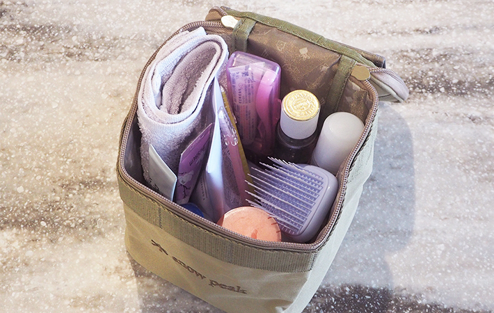 次に、スキンケア・ヘアケアアイテムや歯ブラシなど、旅行で使う洗面用品を中心に入れてみたところ…。
