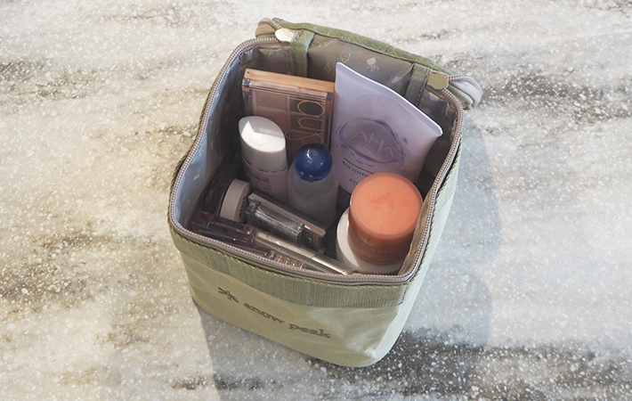 メイク用品だけを持ち運ぶより、スキンケアなどその他のアイテムとまとめて入れるのに、ちょうどいい容量だと思いました。