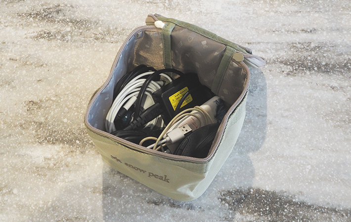 最後に、家の中で散らばりがちなガジェット類を入れてみました。