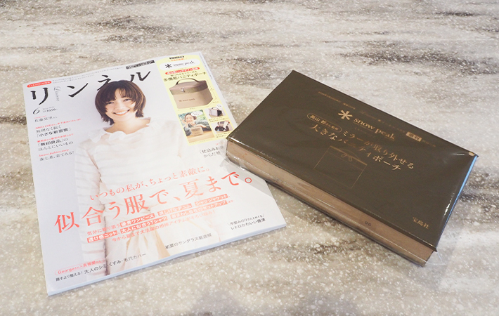 『リンネル』2026年6月号増刊の付録は、『Snow Peak(スノーピーク)』×高山都さん監修の『ミラーが取り外せる多機能バニティポーチ(以下、多機能バニティポーチ)』。