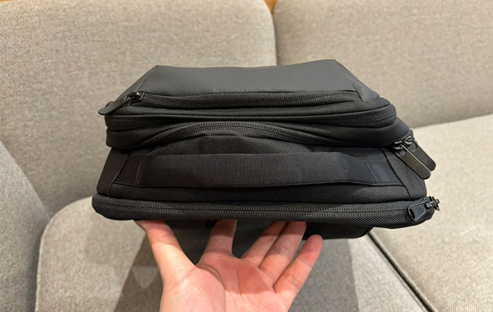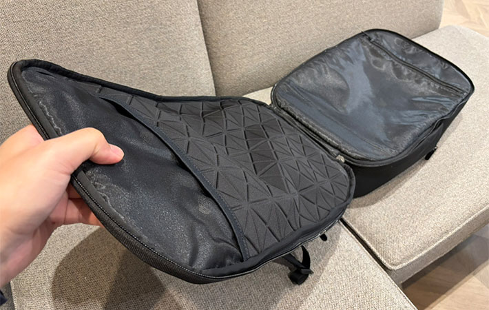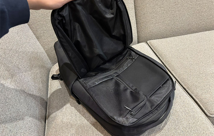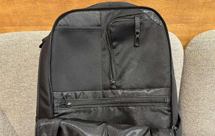 『バサルトデイ』は大きく3つのコンパートメントに分かれています。背中側から順に、PCスリーブ・メインコンパートメント・サブコンパートメントという構造です。