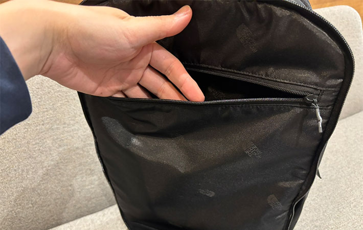 メインコンパートメントと比べると収納スペースはスリム