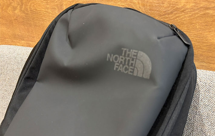 ノースフェイスのロゴは同色系で控えめに