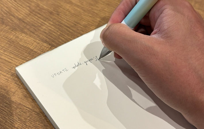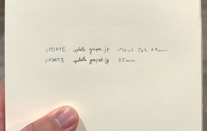 弱い筆圧でも文字がかすれる感じはなく、可視性はしっかり確保されています。紙への引っかかりもほとんどなく、するすると滑らかに書ける印象でした。