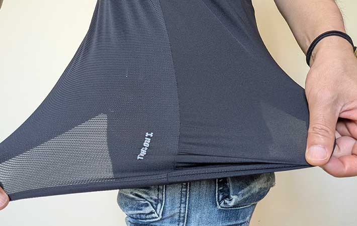 しかも背中の大部分やワキの下など、熱がこもりやすい部分はメッシュ状になっているので、通気性も抜群!