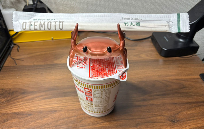 カップラーメンの蓋問題を、カニが一気に片づけてくれる1台。この手軽さを一度味わうと、なぜカニなのかは、あまり気にならなくなるでしょう。