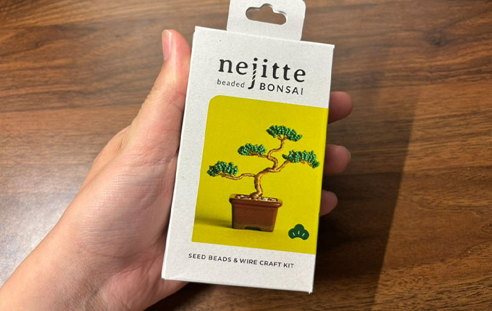そんな人でも楽しめるのが『ネジッテBONSAIキット』。ビーズとワイヤーで作る、指先サイズのミニ盆栽キットです。