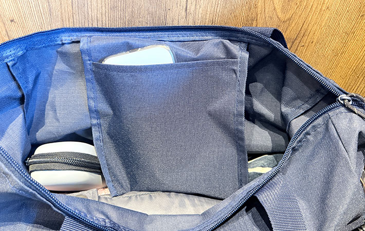 ポケットは全部で3つ。内ポケット1つと両サイドにボトルホルダーがついています。