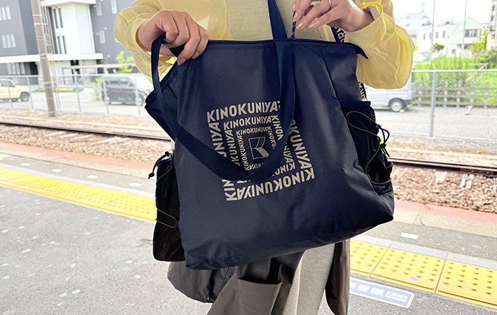 『水に強い!万能トートバッグ』は、紀ノ国屋のロゴをあしらいつつ、ややアウトドアテイストを感じさせるデザインです。