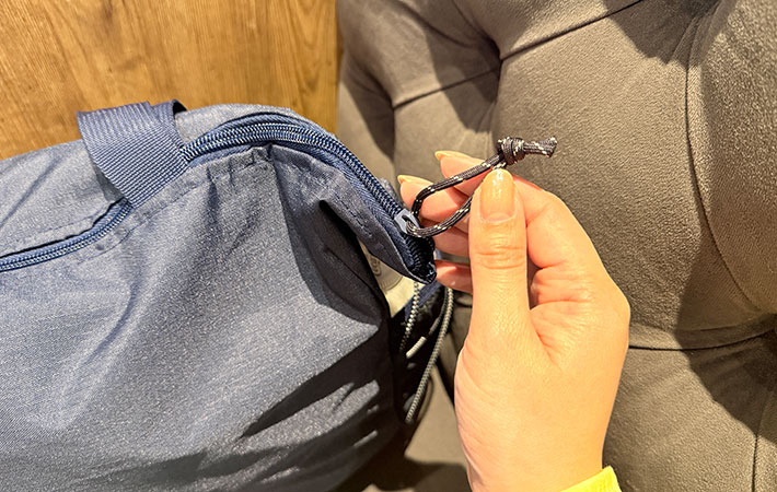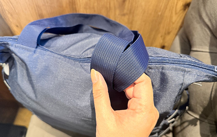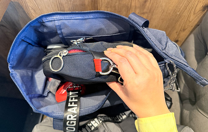 その点、このバッグは上部にファスナーつき。中身をしっかり隠せるので、人混みや電車内でも安心して使えます。