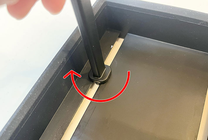 差し込んだ仕切りバーを時計回りに90度回転させると、ロックがかかりバーが動かなくなります。