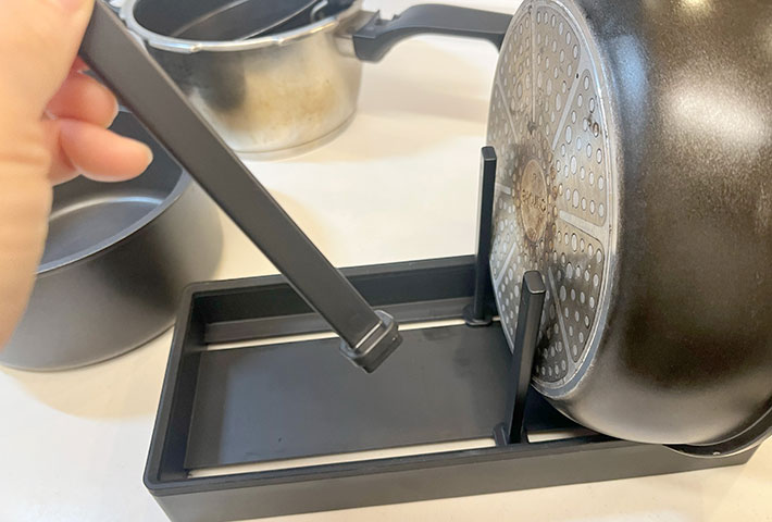 あとはスタンドにフライパンを立てて収納するだけ。