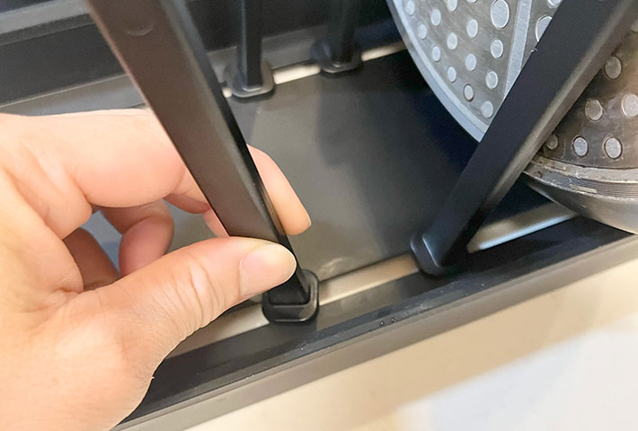 引き出しの開け閉めをしてもスタンドが動いたり、フライパン同士が擦れたりすることもありませんでした。
