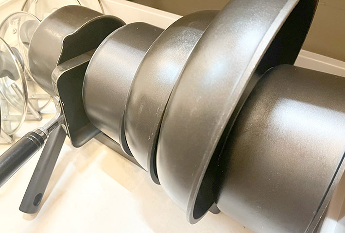 これまで重なっていたフライパンが1つずつきれいに並んで、見た目もすっきり!