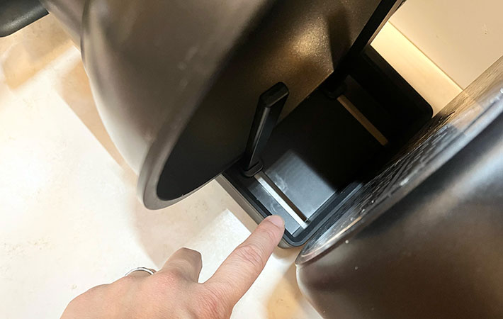 まずは手持ちのフライパンのサイズに合わせて、仕切りバーの位置を調整。